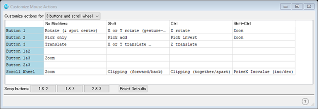 Workspaceメニュー→Customize Mouse Actions
