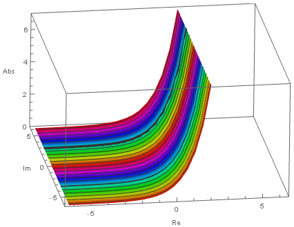 "LogAbs", {(* Log scale *) myAbs = Log[Abs[funcz /. {z -> x + I*y}]]; myAxesLabel = {"Re", "Im", "LogAbs"}; },